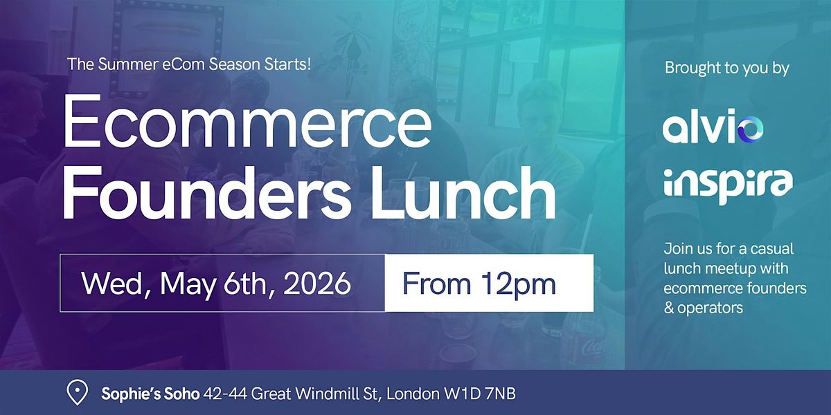 Welcome to the 23rd Ecommerce Founders Lunch! Join us at Sophie's Soho on May 6th, 2026 at 12:00 PM (Europe/London) for a delightful afternoon filled with networking and collaboration. This event follows the eCom Collab Club London, and is a great chance to continue the conversation, postive energy and connect with like-minded individuals in the ecommerce industry. Don't miss this opportunity to share ideas, gain insights, and build valuable relationships. See you there! The price includes a 3 course lunch (Sophies famous steak or a meat free option) and drinks.