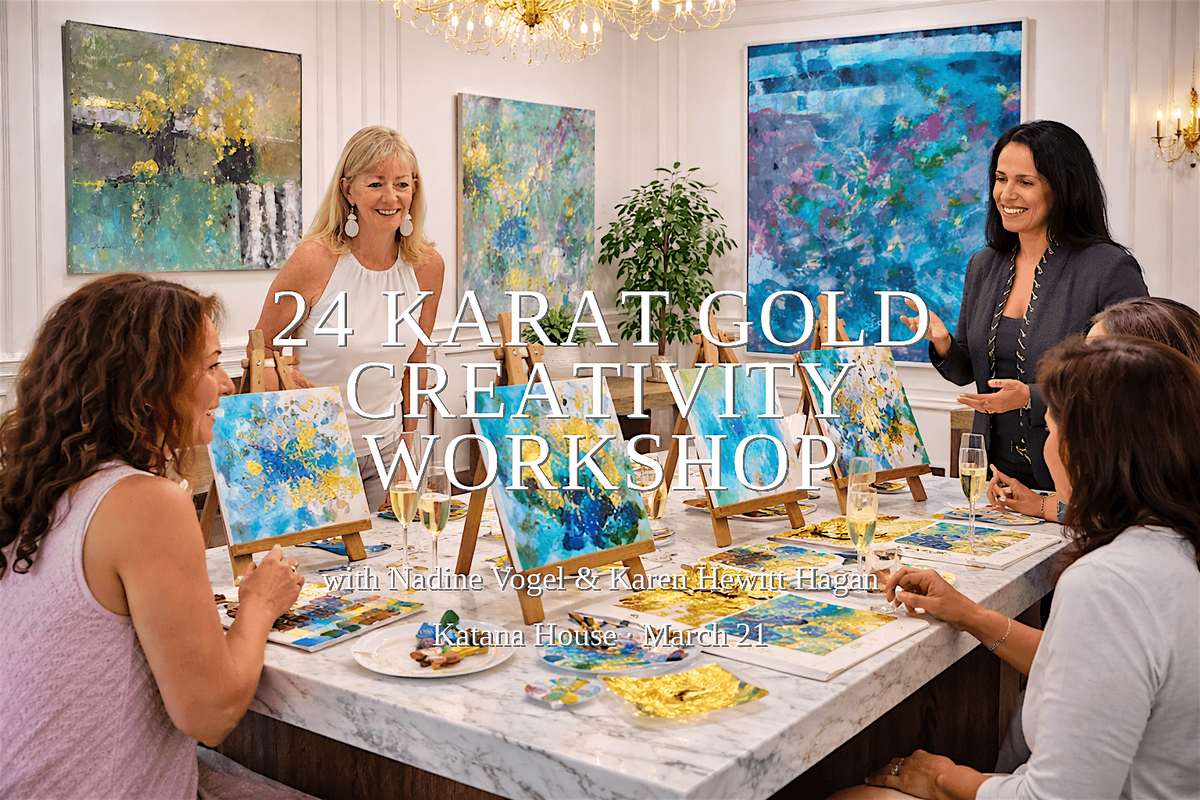 A unique acrylic + 24-karat gold art experience guided by Artist & Author Nadine Vogel and Artist Karen Hewitt Hagan.