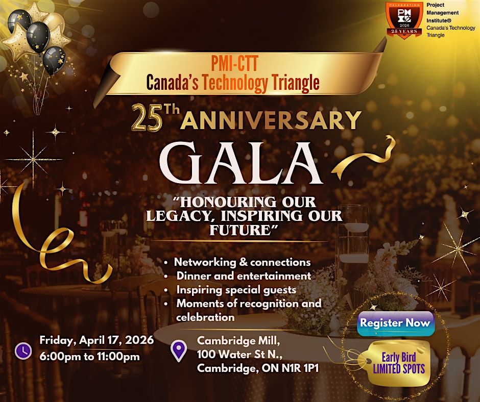 For a quarter of a century, PMI-CTT has empowered professionals, nurtured volunteers, built lasting connections, and shaped the future of project managers in Canada’s Technology Triangle. This gala is a heartfelt tribute to every milestone achieved, every challenge overcome, and every person who made this chapter thrive.