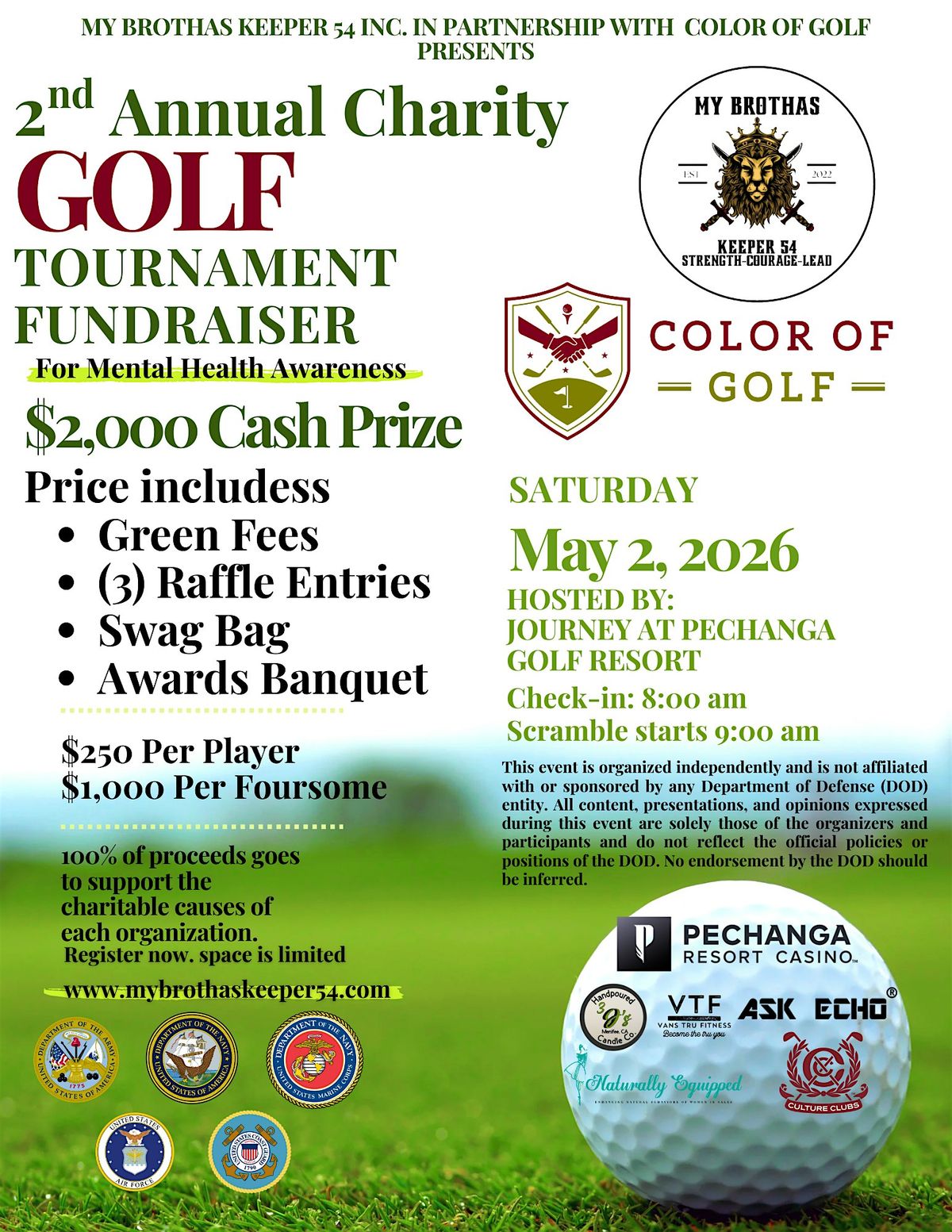 2nd Annual Charity Golf Tournament Fundraiser for Mental Health Awareness