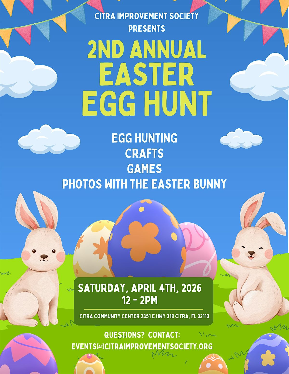 Free event for the community of Citra, FL.. Join us! Easter Eggs, Games, Crafts plus more. The Easter Bunny is waiting to meet you!