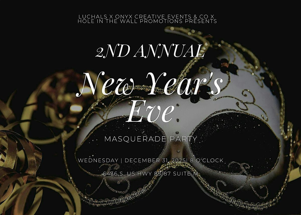 🎭 Luchals Fountain x Amaris Hospitality x Onyx Creative Events & Co x Hole In The Wall Promotions presents the 2nd Annual NYE Masquerade Party!