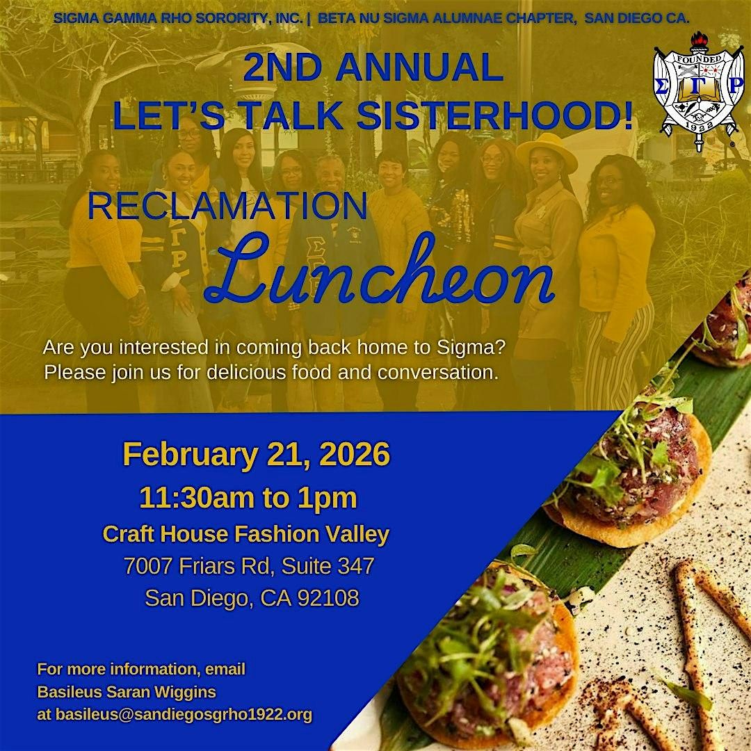The Luncheon will be held at Craft House in Fashion Valley, on February 21st at 11:30 am. Location: 7007 Friars Rd, Suite 347 San Diego, CA 92108.