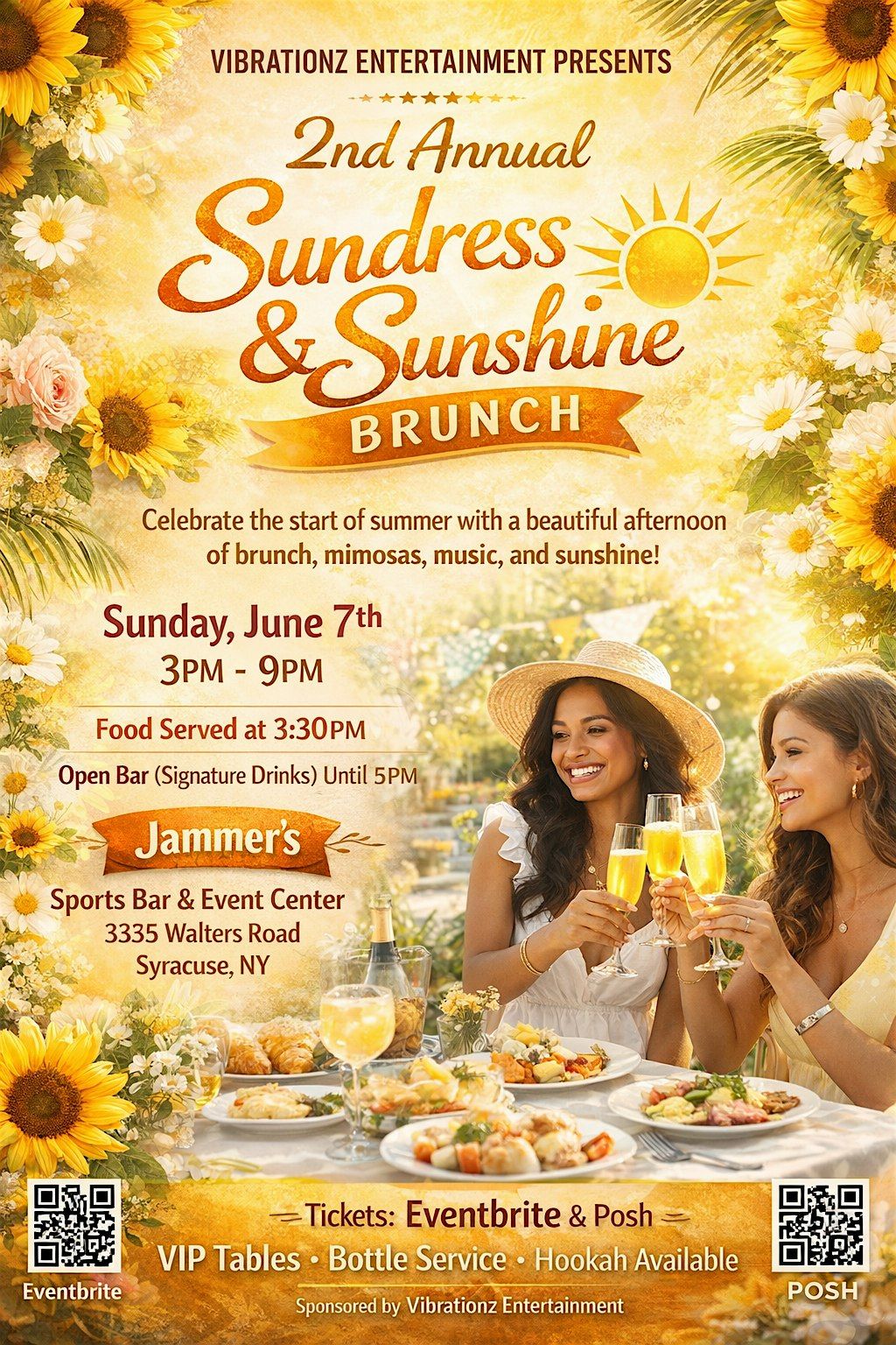 Join us at Jammer's Sports Bar & Restaurant on June 7, 2026 at 3:00 PM (Eastern Time) for a fun, laid-back afternoon. Rock your favorite sundress, soak up the good vibes, and enjoy tasty brunch bites with great company. Whether you're catching up with friends or making new ones, this party is all about sunshine, smiles, and good times. Don’t miss out on the best brunch party of the season!