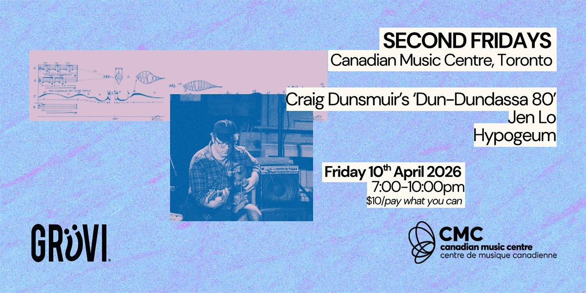 Craig Dunsmuir is a record-store/bookstore buyer and sales clerk, amateur musician and selector who lives in Toronto. He has been a guitarist with and 'riff referee' of/composer for Dun-Dun Band since 2016, and his twenty-year-old duo project with Sandro Perri, Glissandro 70, is set to finally release its sophomore album, G70 2: Bones of Dundasa, on Constellation in May 2026.For April 2026's Second Friday, Dunsmuir (on electric guitar and Roland Handsonic) has put together a quartet (which he has billed Dun-Dundasa 80) to perform material from both his solo Kanada 70 repertoire as well as re-arrangements of Glissandro 70 tunes from the forthcoming G70 2: joining him will be Dun-Dun Band members Josh Cole on electric bass and Mike Smith on keyboards and electronics, alongside Nick Storring (who contributed the album artwork to both of Dun-Dun's Pita Parka LPs) on cello and electronics.