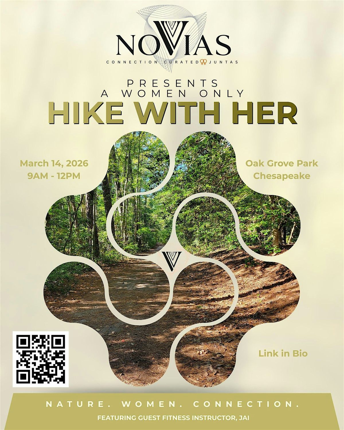 Join us for our second All-Women Hike — this time in Chesapeake at beautiful Oak Grove Lake Park. We’ll be circling the 1.5-mile trail with a special guest fitness instructor adding fun, spaced-out fitness challenges along the way to gently push and empower us. 💪🏾🌸