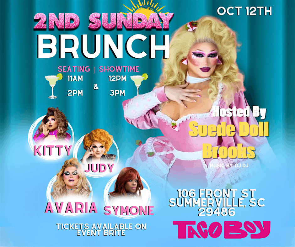 Get ready to spice up your Sunday with Taco Boy Summerville’s brand-new, high-energy drag brunch! Join us every 2nd Sunday for a vibrant afternoon filled with fierce performances, margaritas , delicious food, and good vibes only. 🌈✨