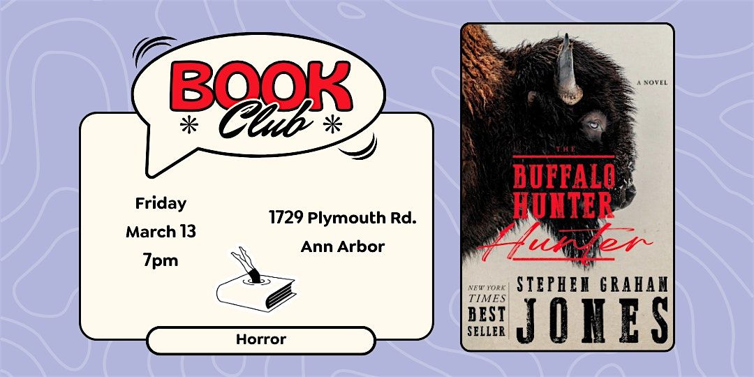 For this gathering, we'll discuss The Buffalo Hunter Hunter by Stephen Graham Jones. We'll meet on Friday, March 13 from 7-8pm.