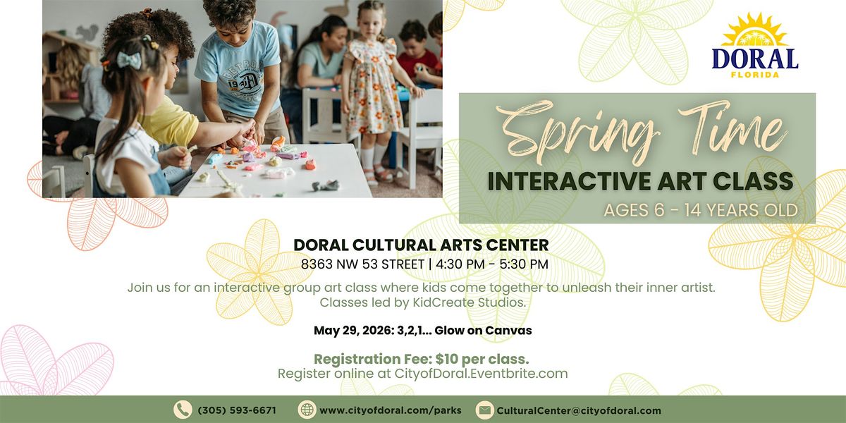 Get ready for another fun and imaginative experience at the Spring Time Interactive Art Class, where creativity shines bright! In this session, kids will explore the world of art as they create their very own 3, 2, 1… Glow on Canvas masterpiece using vibrant colors and glow effects. Led by KidCreate Studios, this engaging class encourages artistic expression, creativity, and confidence in a supportive and welcoming environment. Perfect for young artists ages 6 to 14, it’s a fun spring activity for kids to learn, create, and glow!