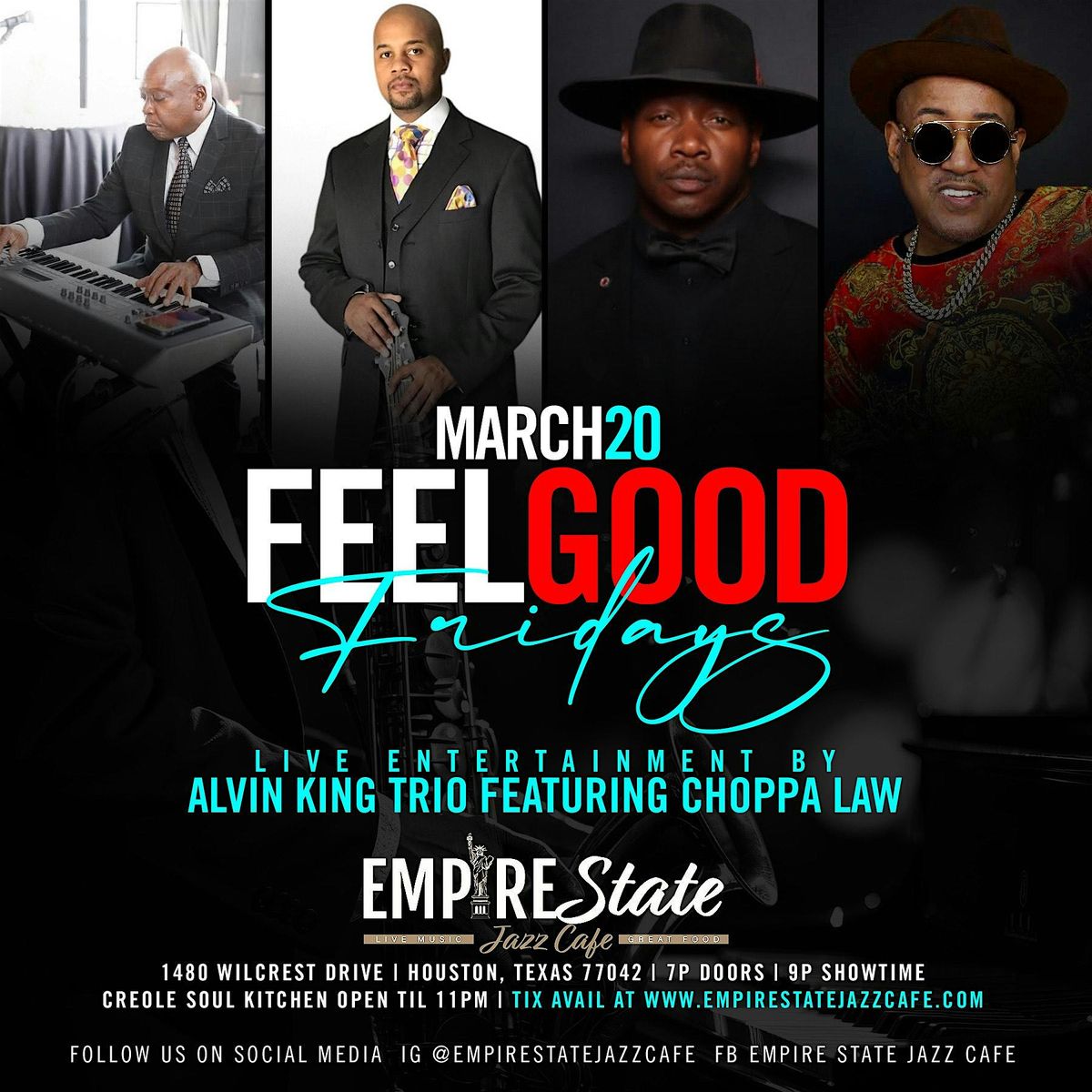 Welcome to the Empire State Jazz Cafe on March 20, 2026 at Doors 7:00 PM | Showtime 9:00 PM for an unforgettable night with the Alvin King Trio featuring Choppa Law! Get ready for an evening filled with soulful jazz music and incredible performances.