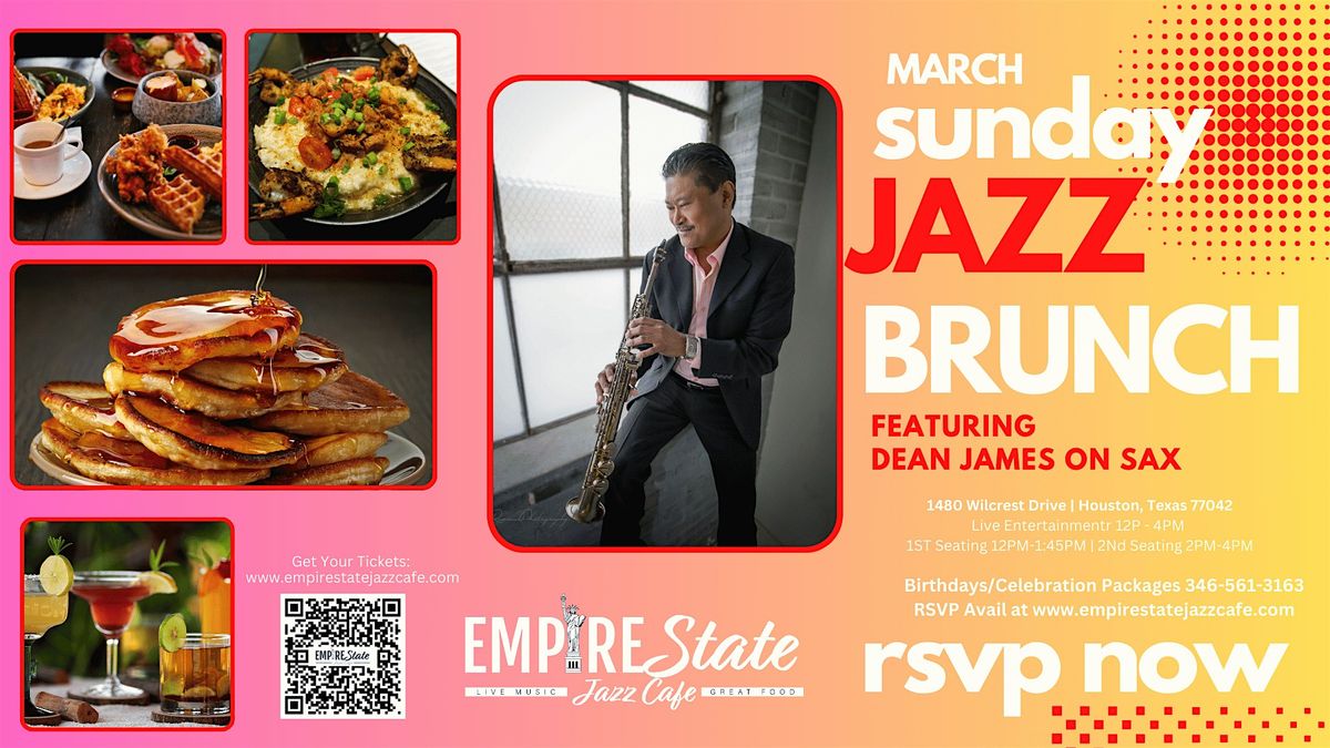 Welcome to the Empire State Jazz Cafe for the 3/22 - Sunday Jazz Brunch w/ Dean James (Noon Seating) event! Join us on March 22, 2026 at 12:00 PM for a delightful afternoon filled with smooth jazz tunes by Dean James. Get ready to enjoy great music, delicious food, and fantastic company. Don't miss out on this perfect Sunday outing!