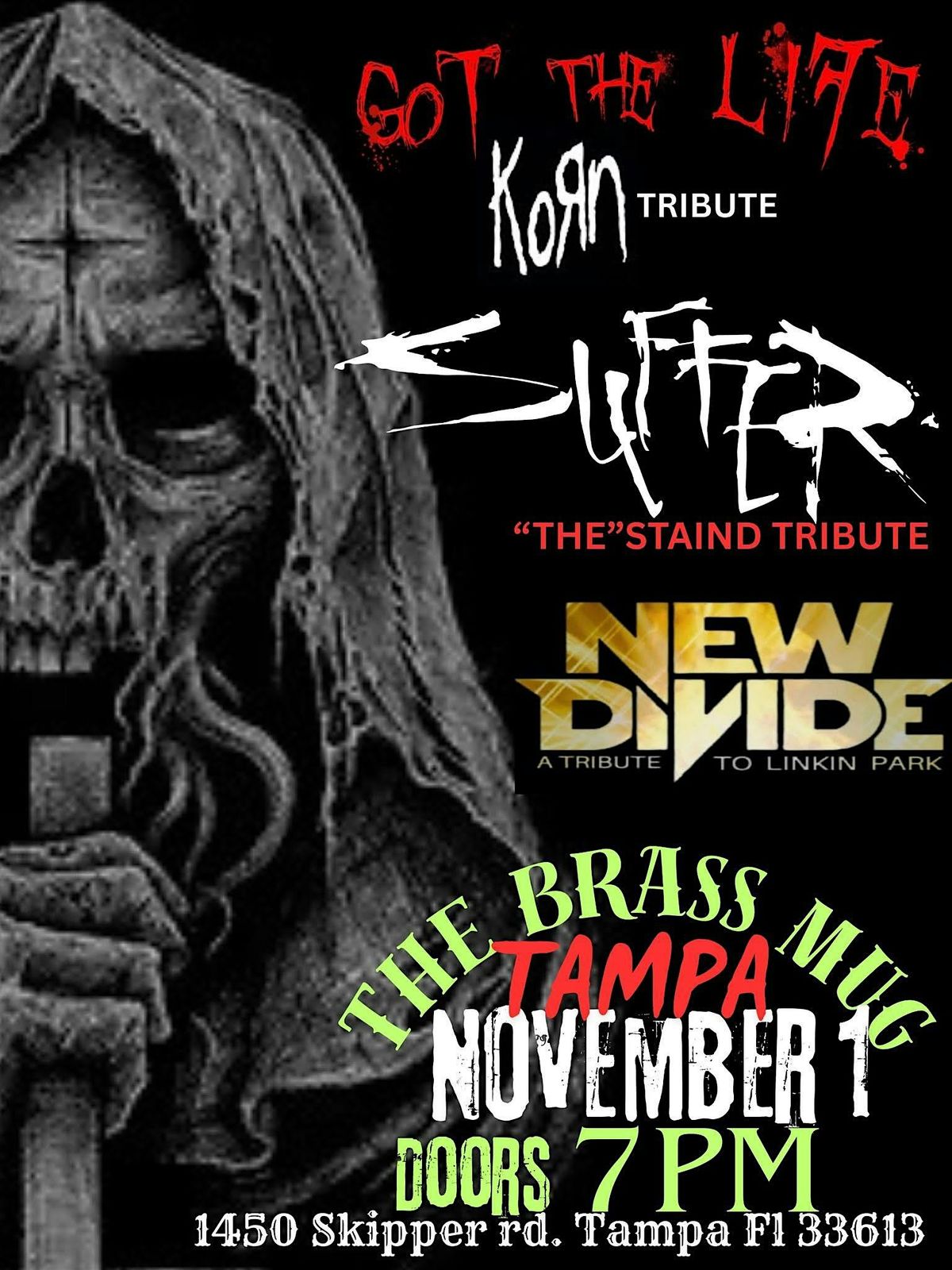 Come join us and experience 3 Great Tribute bands in one night: Got The Life (KORN), New Divide (LINKIN PARK) & Suffer (STAIND).