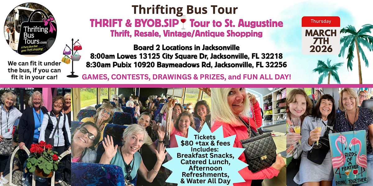 Join us for our FIRST-EVER Thrifting Bus Tour rolling out from Jacksonville to historic St. Augustine for a full day of treasure hunting and fun! 🌴🛍️