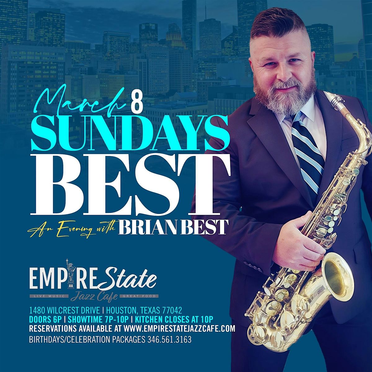 Welcome to the Empire State Jazz Cafe for a special edition of Supper Club Sundays! Join us on March 8, 2026 at Doors 6:00 PM | Shpwtime 7PM for an unforgettable evening with Brian Best & Friends. Get ready for an incredible night of live music and delicious food. Don't miss out on this opportunity to enjoy great company and amazing tunes. See you there!