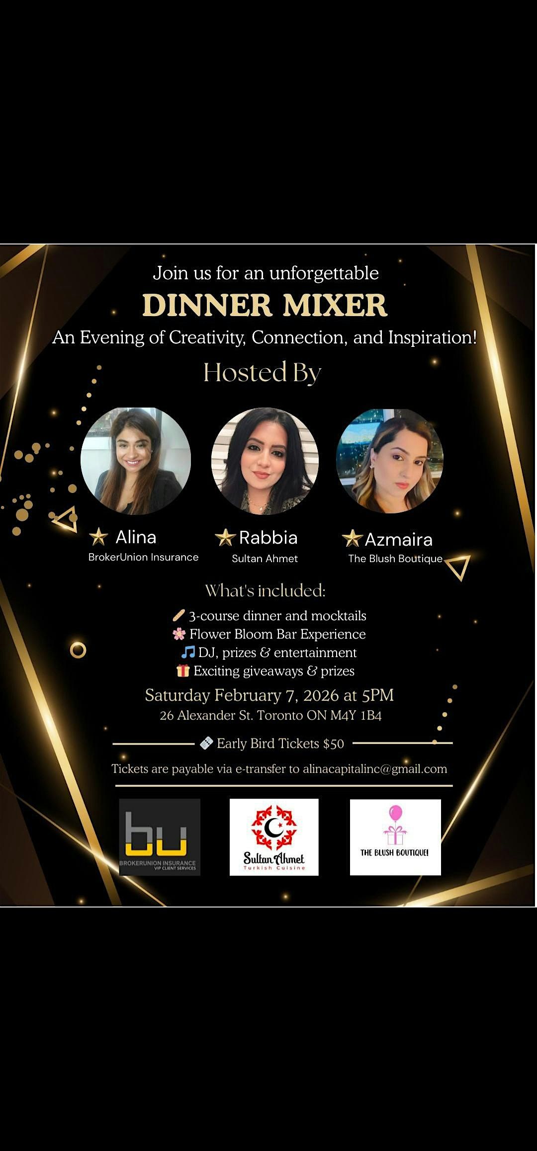 Get ready for an evening of great food and even better company! This in-person event features a delicious 3 course dinner paired with expertly crafted mixers. Whether you're looking to unwind or meet new friends, this night has got you covered. Don't miss out on a fun, relaxed vibe with tasty bites and refreshing drinks. See you there
