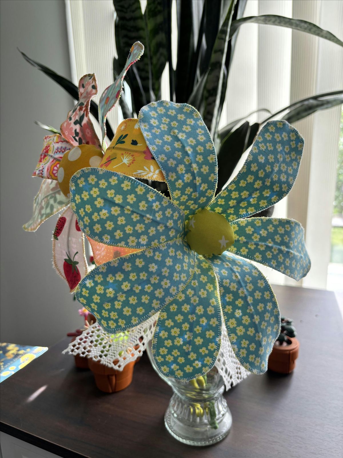 *If you want all flowers petals to be the same, you should bring 2 pieces of fabric about 16 x 6 inches. 2 fat quarters will be more than enough fabric.