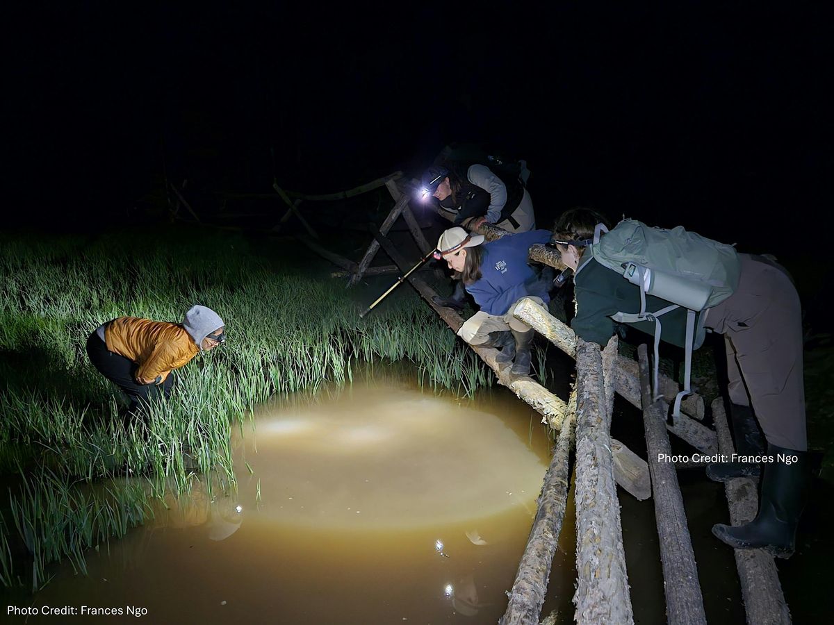 Difficulty: Up to 4/10, variable hiking conditions. No super long or challenging hikes though we will be on our feet walking off trail through dense vegetation (willows, long grasses), uneven, wet forest terrain for most of each day. One area is a cluster of ponds that we will survey as many as we can which involves short hikes (~500ft) between each pond. We will survey multiple sites including a night survey.