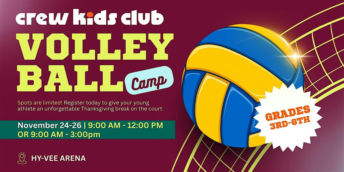 Whether youβre just starting out or ready to take your game to the next level, the Crew Kids Club Volleyball Camp is the perfect place to learn, grow, and have fun in a safe, supportive, and exciting environment! π₯