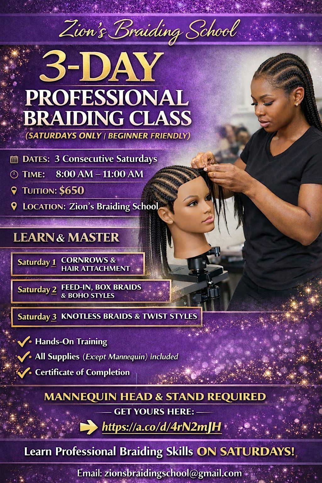 3-Day Professional Braiding Class (Saturdays Only | Beginner Friendly)