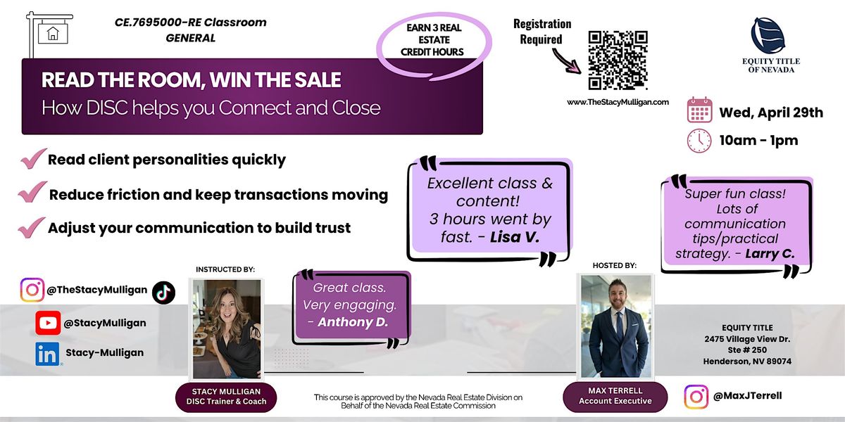 3 Hour CE CLASS - Read the Room, Win the Sale