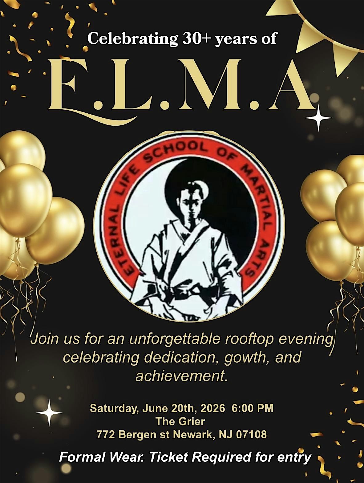 You are cordially invited to honor Master Devin Lewis and The Eternal Life School of Martial Arts for more than 30 years of unwavering dedication, service, and impact within the community.