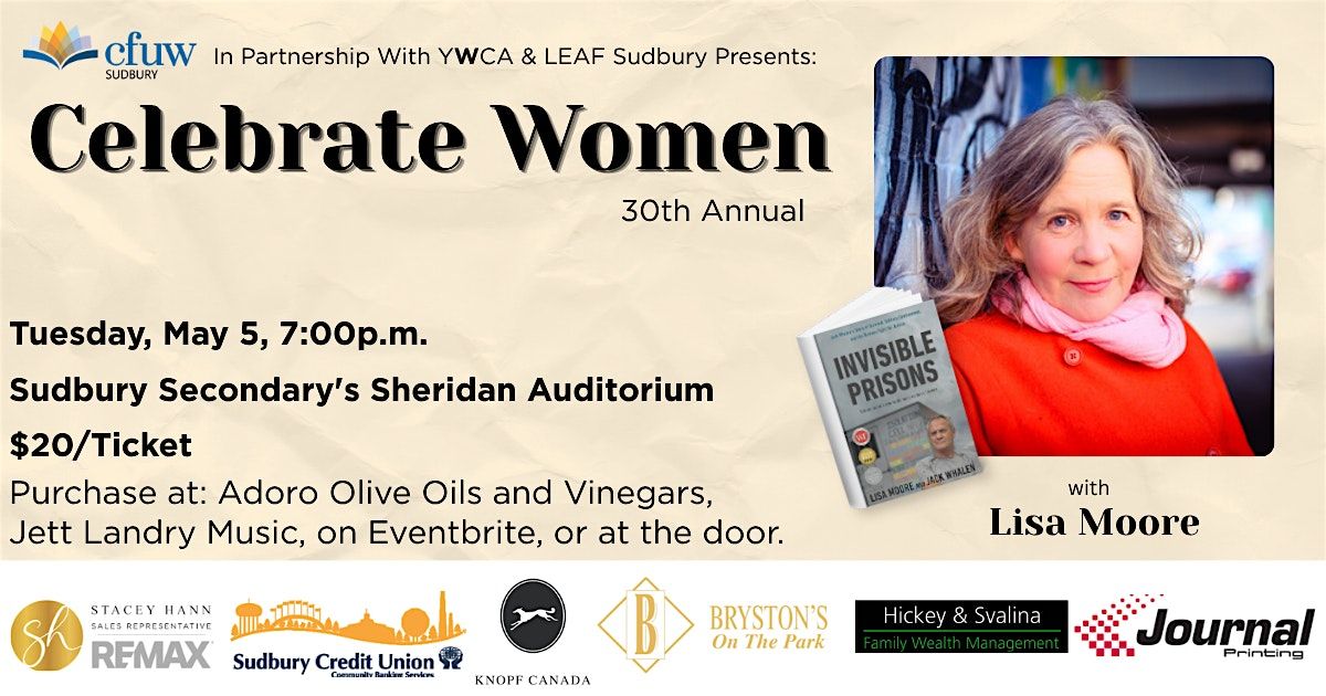 Celebrate Women is CFUW Sudbury's signature event. This highly successful annual fundraiser features a Canadian female author who reveals her experiences as the author of her latest book. It was created in 1996 in partnership with the YWCA Sudbury and the Women's Legal Education and Action Fund. CFUW Sudbury's share of proceeds assists in providing bursaries and scholarships to deserving students.