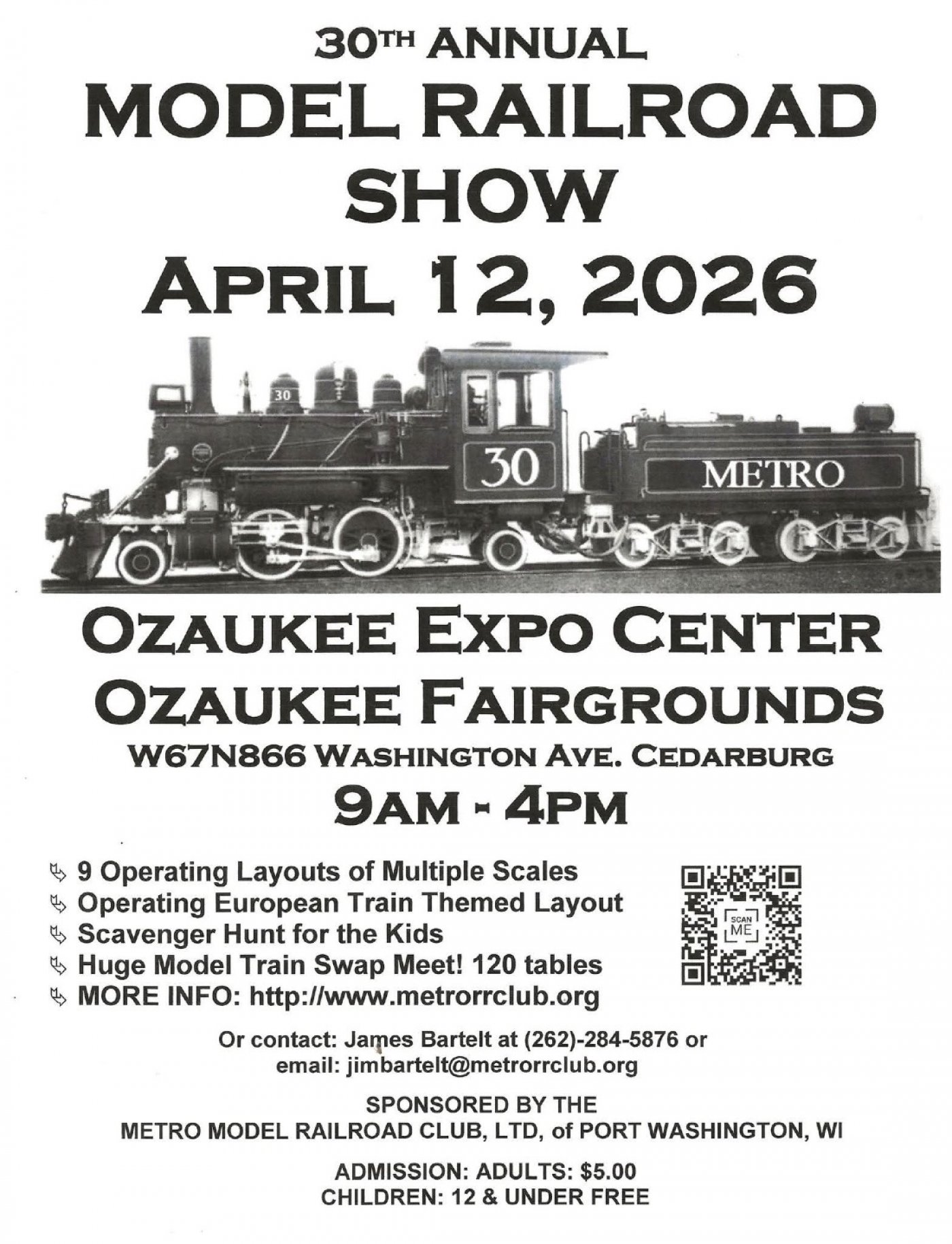 Model Train show and swap meet. Fun for the whole family. 9 different operating layouts of various scales. 120 tables of model trains for sale. Show is open to all.