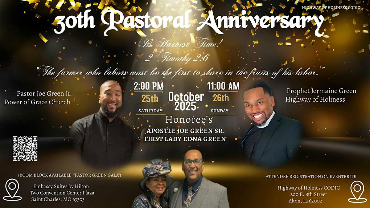 Info: Day 1: The Gala will be a Black-Tie Event, featuring Pastor Joe Green Jr. from Power of Grace Church as our special guest. We are excited to have him and his lovely wife, First Lady Darrea Green. Day 2: Sunday, October 26th, The Official 30th Pastoral Anniversary Service. Our very own Prophet Jermaine Green will be our guest speaker