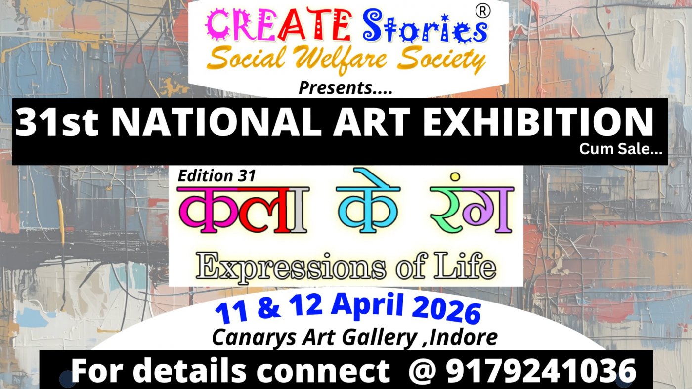 National Art Exhibition(Offline)Kala Ke Rang: Expressions of life: 31th Edition (National Art Exhibition) by Create Stories Social Welfare Society (Connect @ 9179241036) for participating or more details.