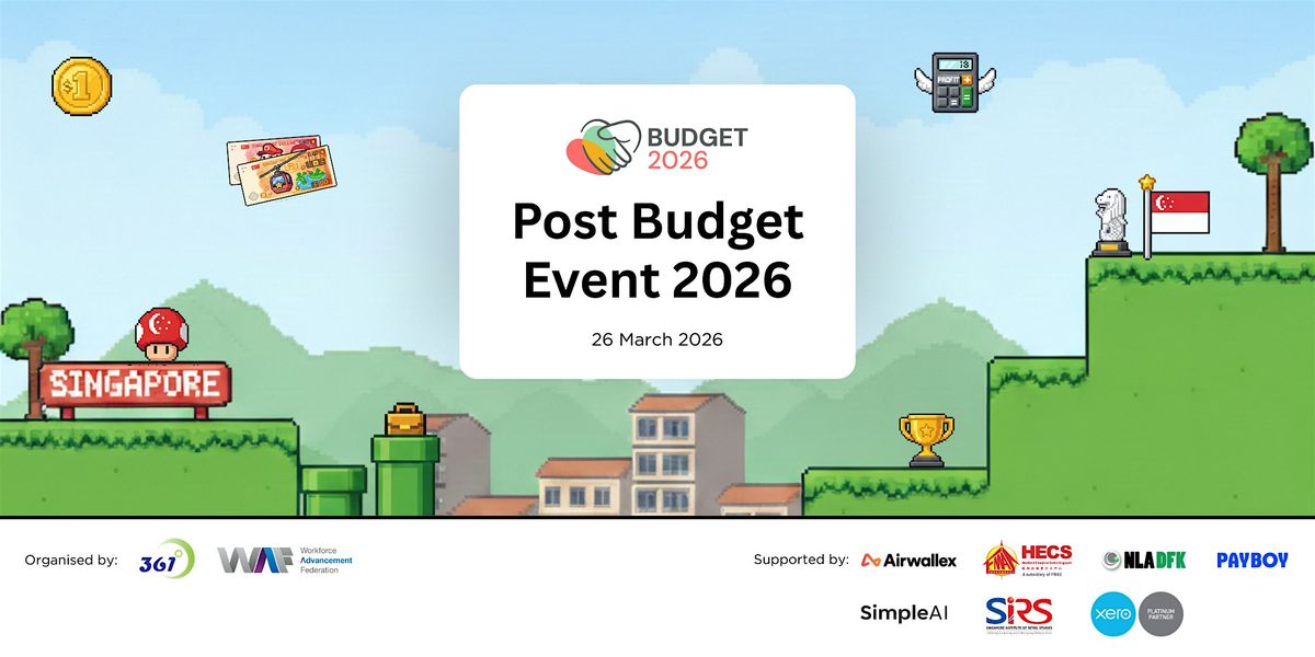 Co-organised by 361 Degree Consultancy and Workforce Advancement Federation. Supported by Airwallex, Heartland Enterprise Centre Singapore, NLA DFK, PAYBOY, SimpleAI, Singapore Institute of Retail Studies and Xero.