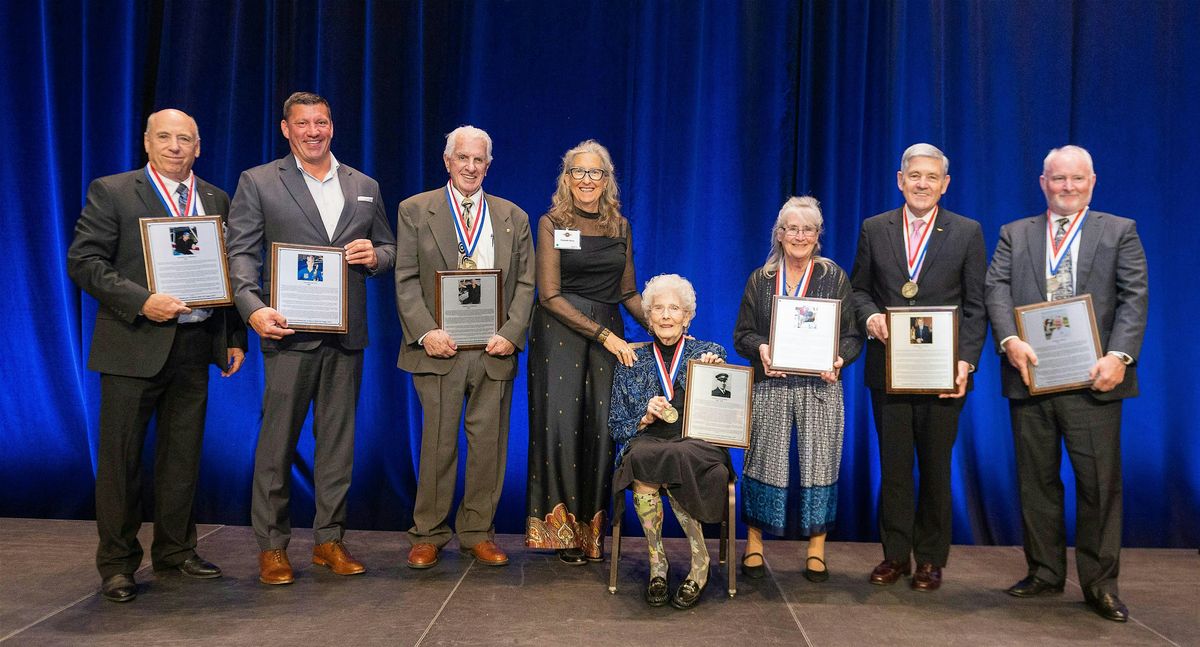 Eugene "Gene" DePalma, Robert J. Pond, John R. Sandberg, Conrad "Butch" Maxwell, James A. Olsen, Charles "Chuck" Doyle, Jr., Cora Mae Fuller - Pioneer Inductee