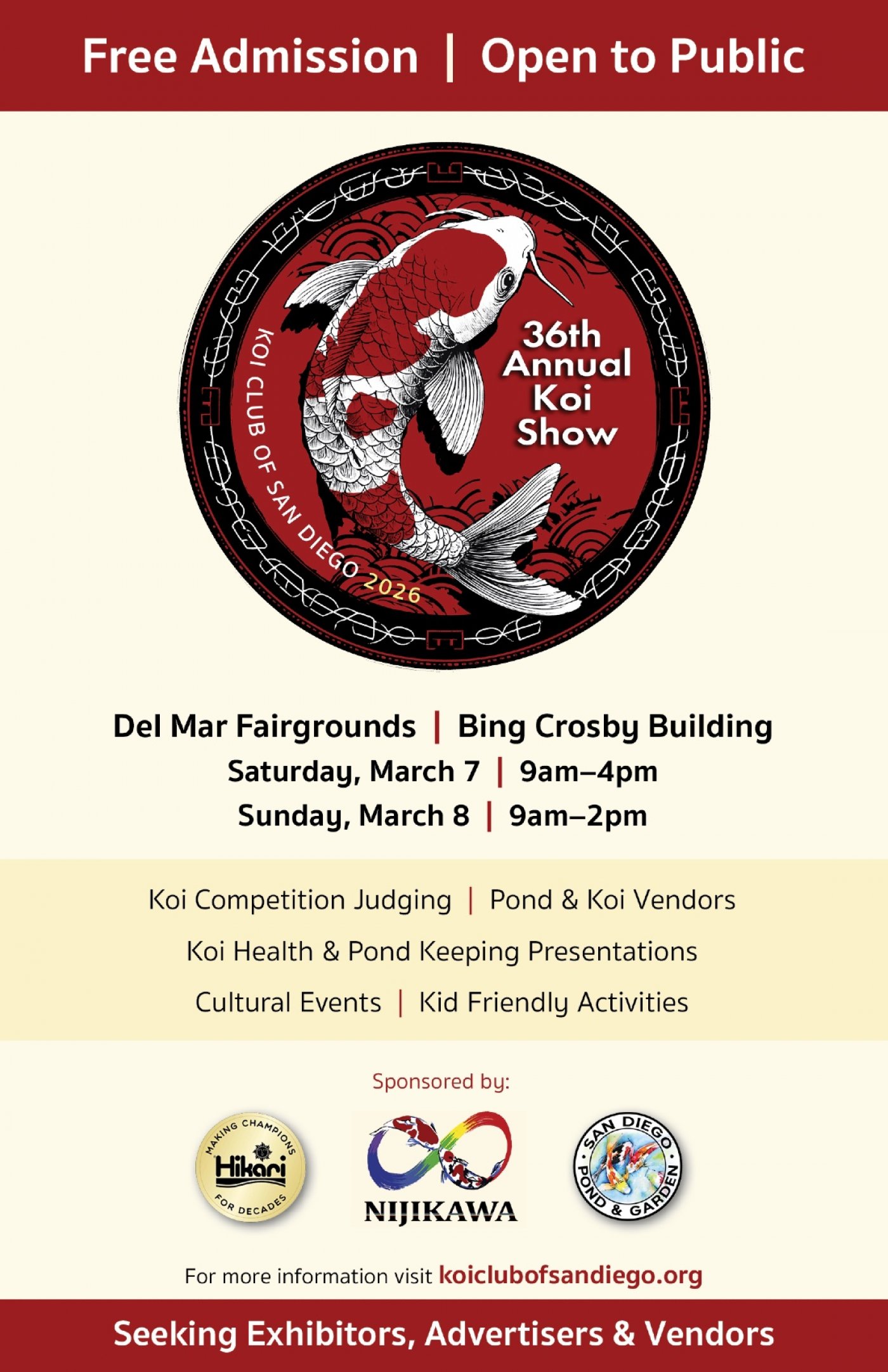 Whether you're a koi enthusiast or simply want an introduction to this enjoyable hobby, you will find something unforgettable at the San Diego Koi Show.
