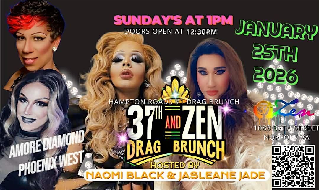 Welcome to the 37th and Zen Drag Brunch! Join us at 37th and Zen on January 25, 2026 at 12:30 PM (Eastern Time) for a fabulous afternoon filled with amazing drag performances and delicious brunch offerings. Get ready to be entertained by talented drag queens while enjoying tasty food and drinks in a lively atmosphere. Don't miss out on this unforgettable experience! Grab your friends and come have a blast with us!
