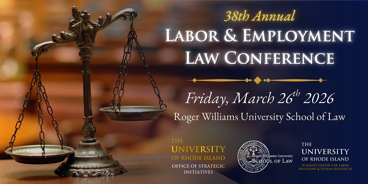 The URI Office of Strategic Initiatives, in partnership with the Schmidt Center for Labor Relations and Human Resources, is excited to welcome you to register for URI's 38th Annual Labor and Employment Law Conference, hosted by the Rogers Williams University School of Law.