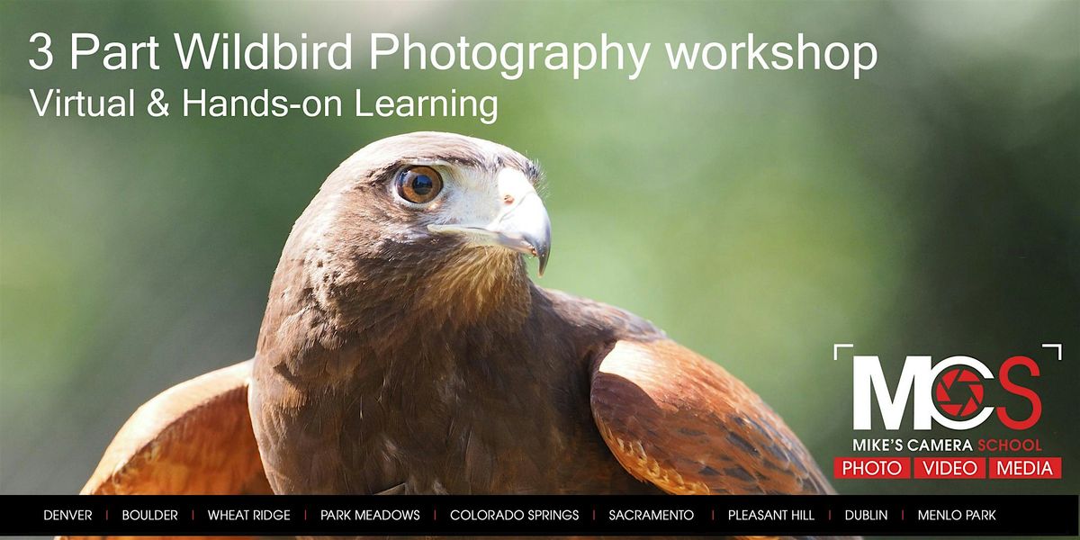 The Workshop includes an evening online class, followed by a Saturday morning photo session with birds of prey at Bear Creek Lake Park (Lakewood), and a follow up online critique.