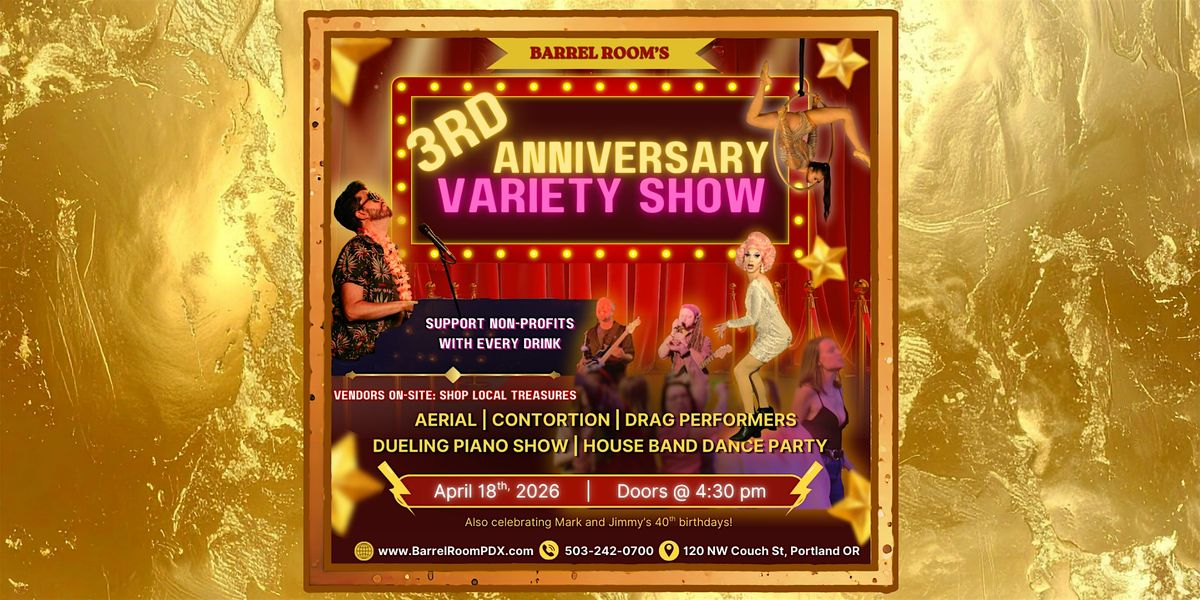 Join us as we celebrate the 3rd Anniversary of Barrel Room. It’s hard to believe it’s already been three years since we opened this location under new ownership. In that time, you’ve filled this space with good vibes, great music, and unforgettable moments with friends and perfect strangers alike. Your support has helped keep live music alive and thriving in Portland, and we’re so grateful for this community.