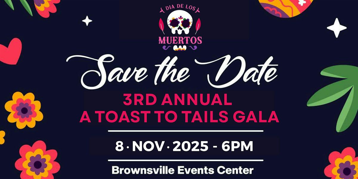 The inaugural Toast to Tails Gala will be hosted at the Brownsville Event Center on Saturday, November 2, 2024. Your ticket purchase, sponsorship, or the simple act of sharing about the event will help in our efforts to raise funds to continue to support the shelter’s resources and the animals that we serve daily.