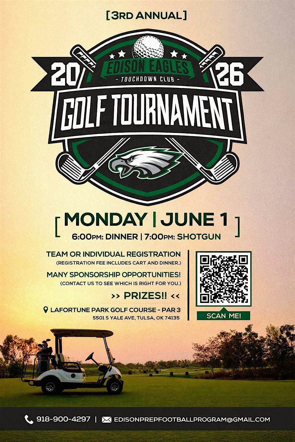 Welcome to the Edison Eagle Touchdown Club Golf Tournament! Get ready for an evening of fun under the lights with the Edison Eagles. Join us at LaFortune Park Golf Course on Mon June 1 2026 at 6:00 PM for a round of golf like no other.