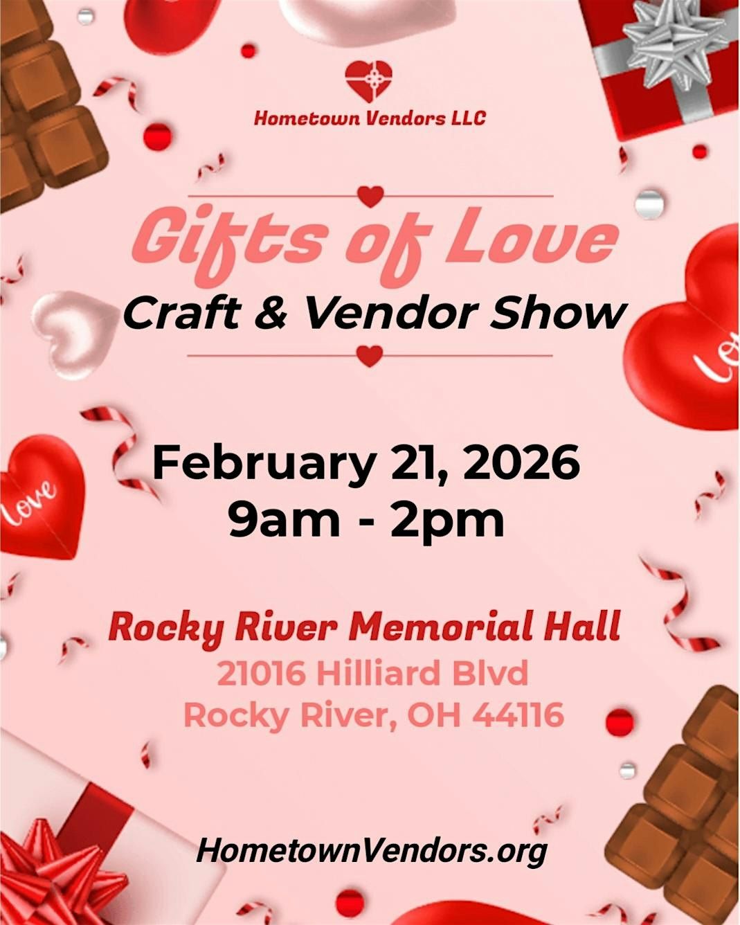 If you are interested in being a vendor for any of our 2026 shows please email us at [email protected] You can see a list of all our shows on our website at HometownVendors.org.
