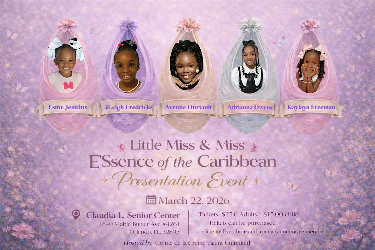 Celebrate culture and confidence as the 2026 Little Miss & Miss E’Ssence of the Caribbean contestants take the stage, symbolically emerging from their cocoons as they begin their journey toward transformation.
