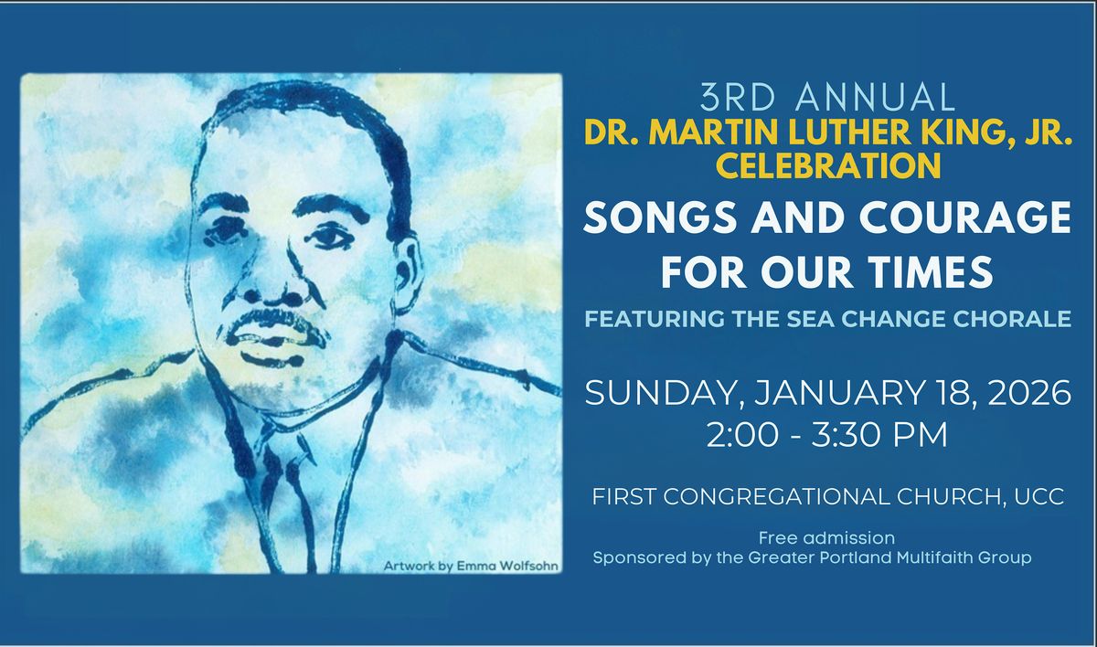 All are welcome to attend an afternoon of music and reflection on the legacy of the Rev. Dr. Martin Luther King, Jr., led by spiritual leaders from the Greater Portland Multifaith Group and featuring music by the Sea Change Chorale.