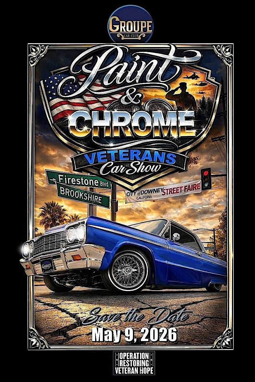3rd annual Paint and Chrome Car Show honoring our Veterans, law enforcement and first responders. With the Chamber or Commerce, Downey, CA.About this Event
