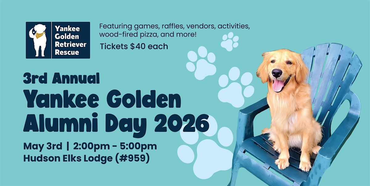 Whether it’s just you or you’re bringing a furry friend along, we welcome all Yankee Golden alumni- past and present adopters, supporters, volunteers, and community members. Featuring games (for dogs and people), raffles, vendors, activities, catered wood-fired pizza, and more, this year’s event is one you won’t want to miss.