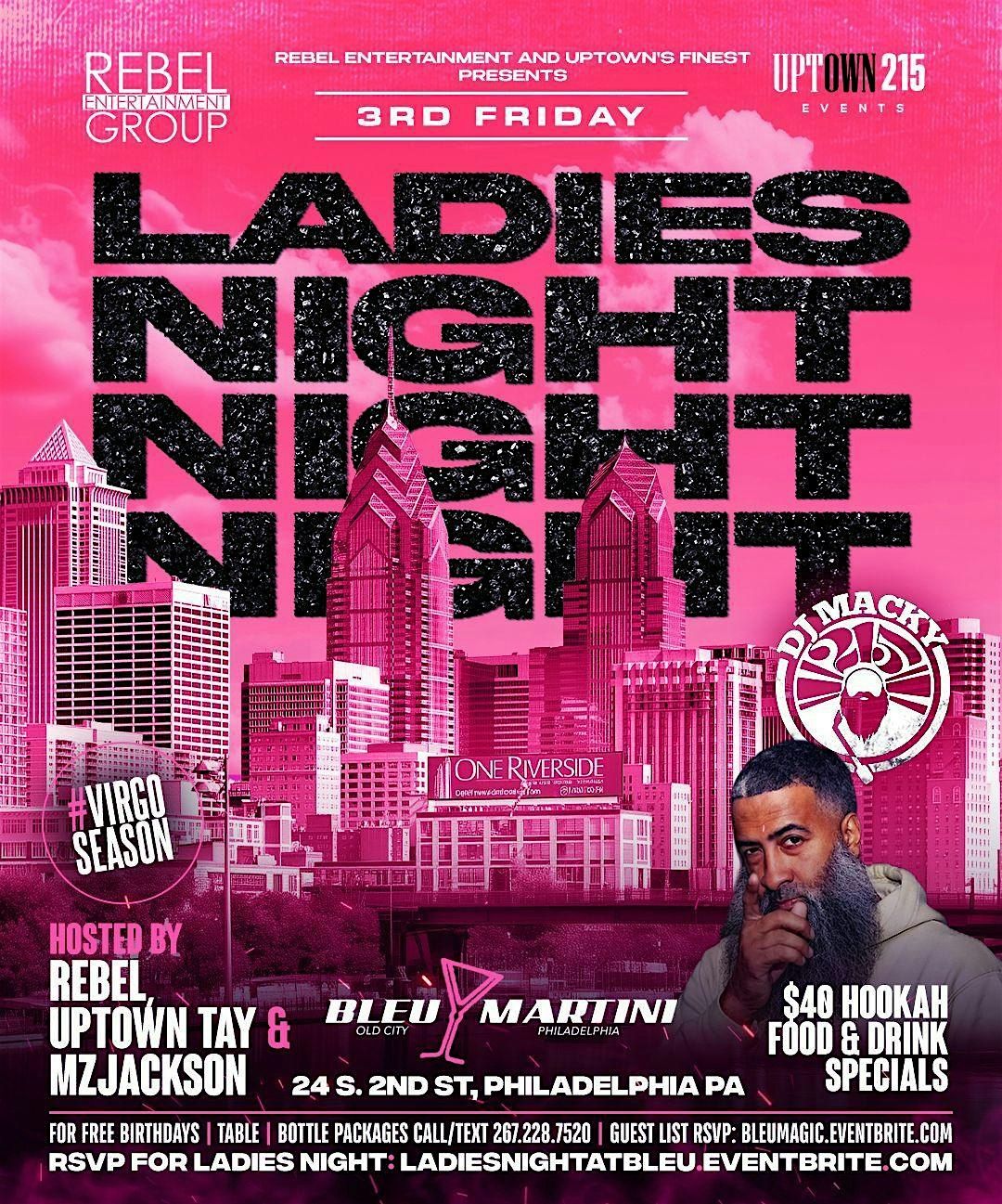 join us at Bleu Martini w/ Uptown's Finest on 3RD FridayS for a special edition of Ladies Night hosted by Rebel, Uptown Tay & @MzJacksonAbout this Event