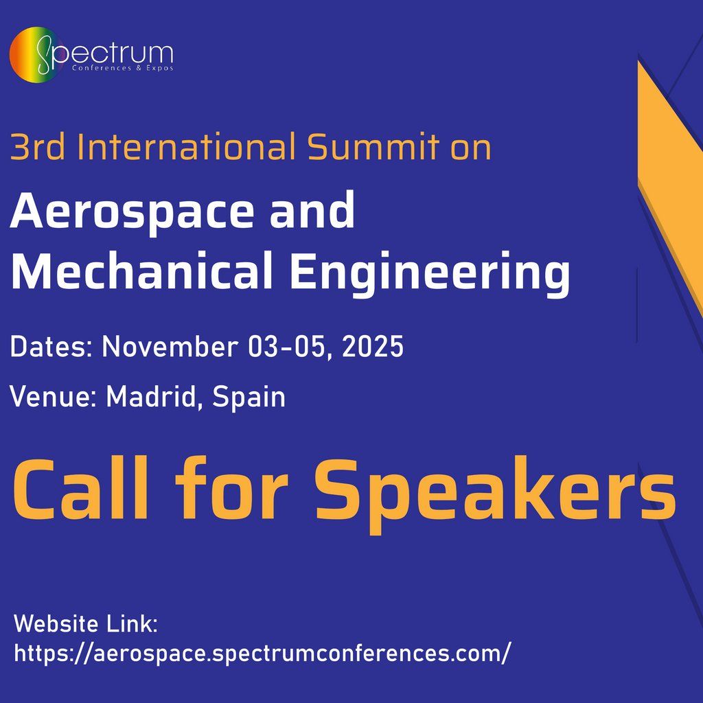Speaker Invitation - 3rd International Summit on Aerospace and Mechanical Engineering scheduled take place in Madrid, Spain |November 03-05, 2025