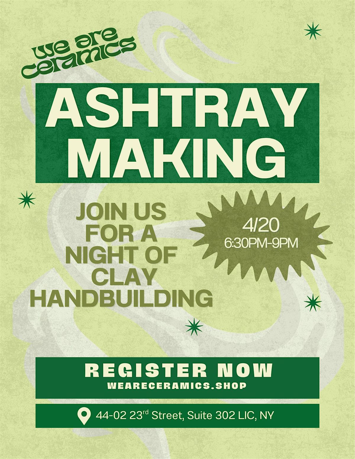 We are Ceramics is hosting an ashtray making workshop to celebrate 4/20 the right way🤌🏻