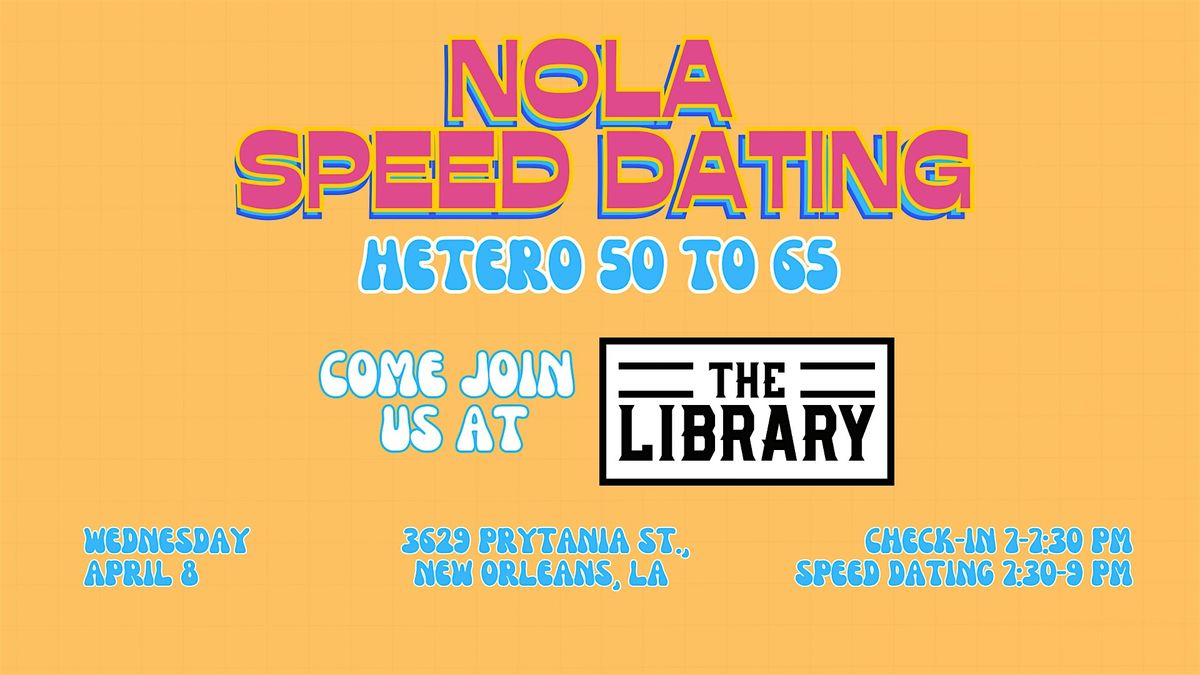 Thank you for your interest in attending a NOLA Speed Dating Event! We will be hosting this round at The Library at 3629 Prytania St. This event is designed for people attracted to the opposite gender between the ages of 50 to 65.