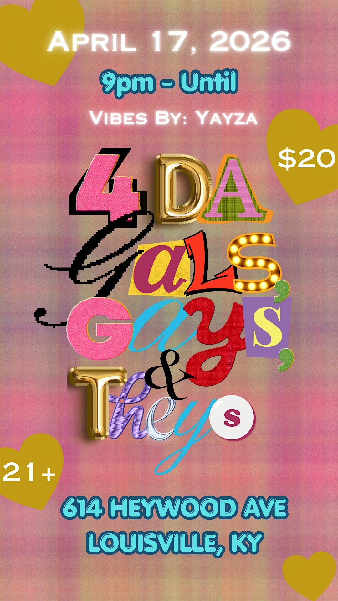 Get ready for a fun night celebrating all the vibes of gals, gays, and theys coming together to party and connect!