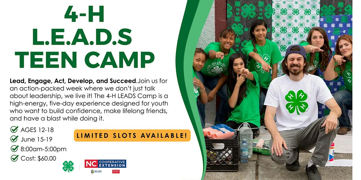 Are you ready to level up? 4-H LEADS (Lead, Engage, Act, Develop, and Succeed) is an, week-long traveling camp designed for teens who want to lead the way. This isn't your average summer camp, we are hitting the road to explore three different counties to see leadership in action!