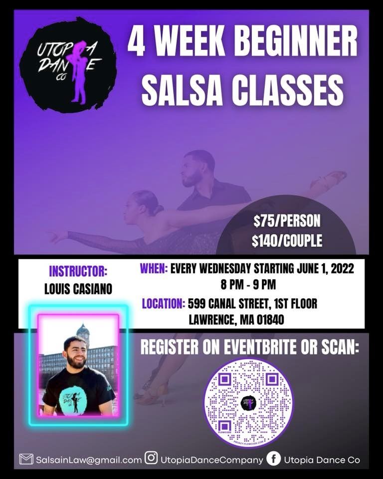 4 Week Beginner Salsa IntensiveTired of being the only one not dancing Salsa at parties or social events? Now is your chance to discover your flow with Utopia Dance Company!